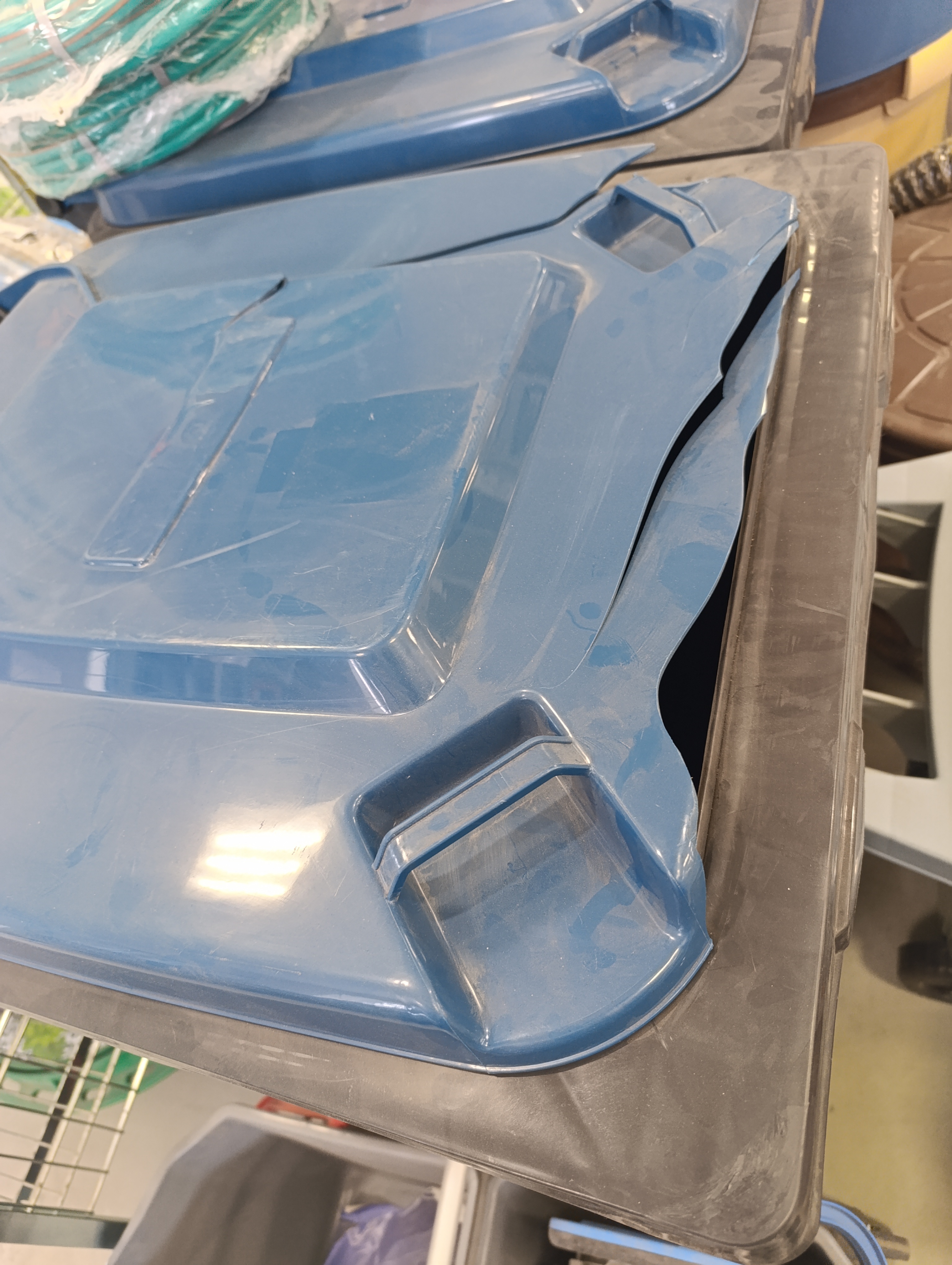 Бак для мусора 240л, на колесах, серо-синий /М5938/ УЦЕНКА!!! разбита крышка/