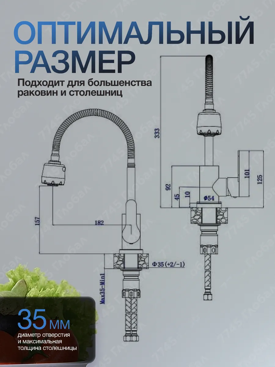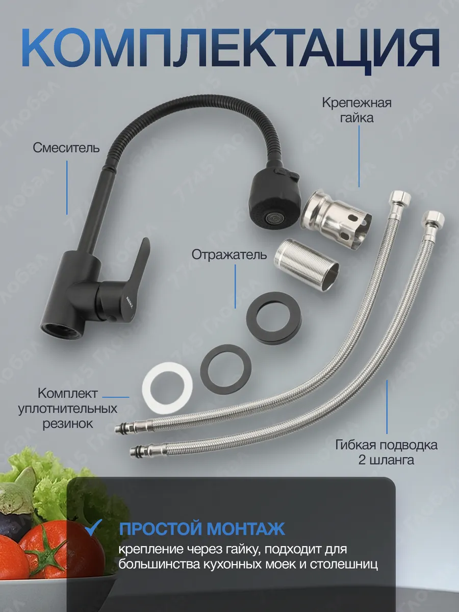 Купить Кух.смеситель Avapax (SUS 304) D35 серия Elbe черн. AP01278B в Брянске вы можете в сети магазинов "Современный ДОМ". Адреса магазинов
