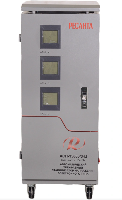 Купить Стабилизатор напр. РЕСАНТА АСН-15000/3-Ц трехфазный /63/4/17 в Брянске вы можете в сети магазинов "Современный ДОМ". Адреса магазинов
