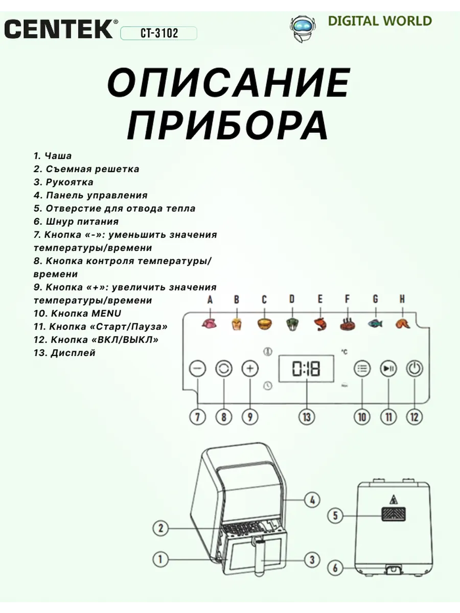 Аэрогриль Centek CT-3102