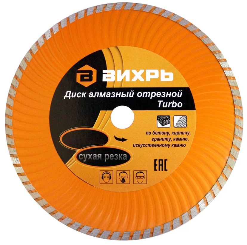 Купить Диск алмазный отрезной Вихрь Турбо 230х22,2мм, сухая резка в Брянске вы можете в сети магазинов "Современный ДОМ". Адреса магазинов