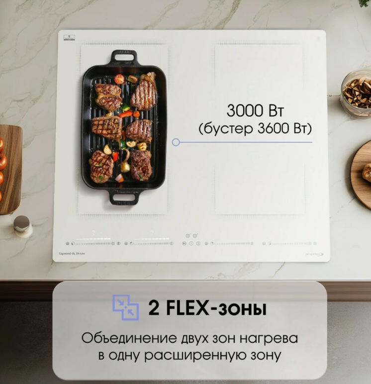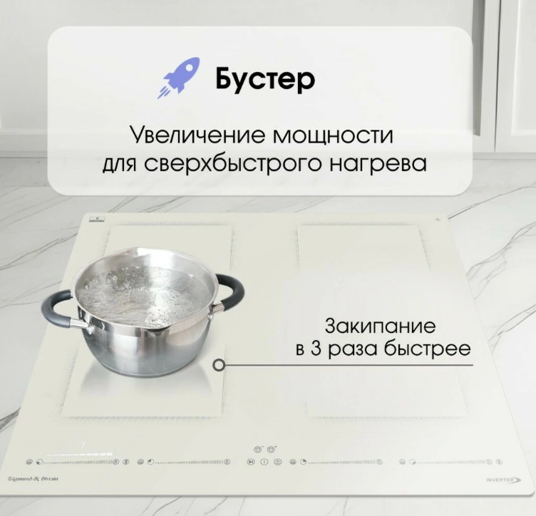 - Автоматическое определение размера посуды и адаптация мощности