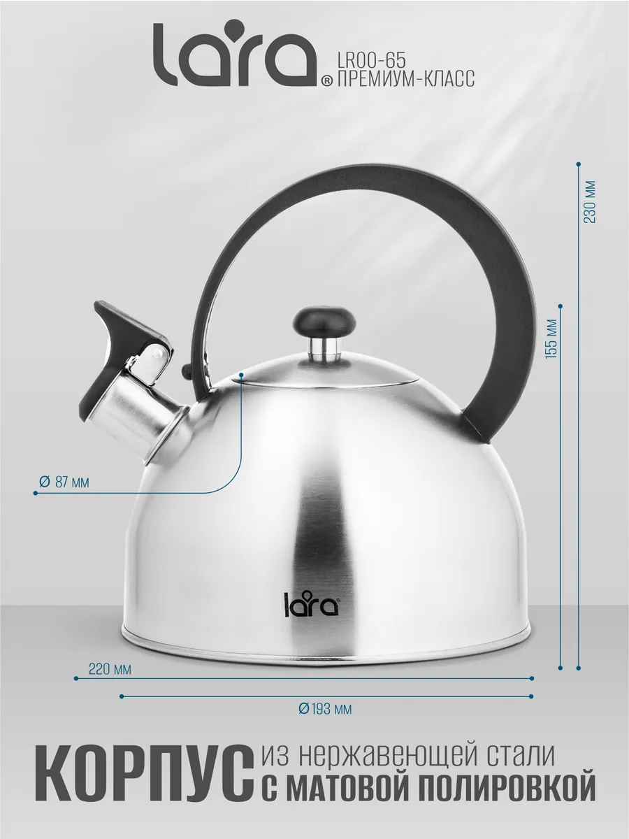 Купить Чайник LARA LR00-65 (матовый) 2,5л, индукционное капсул. дно, нейлоновая ручка в Брянске вы можете в сети магазинов "Современный ДОМ". Адреса магазинов