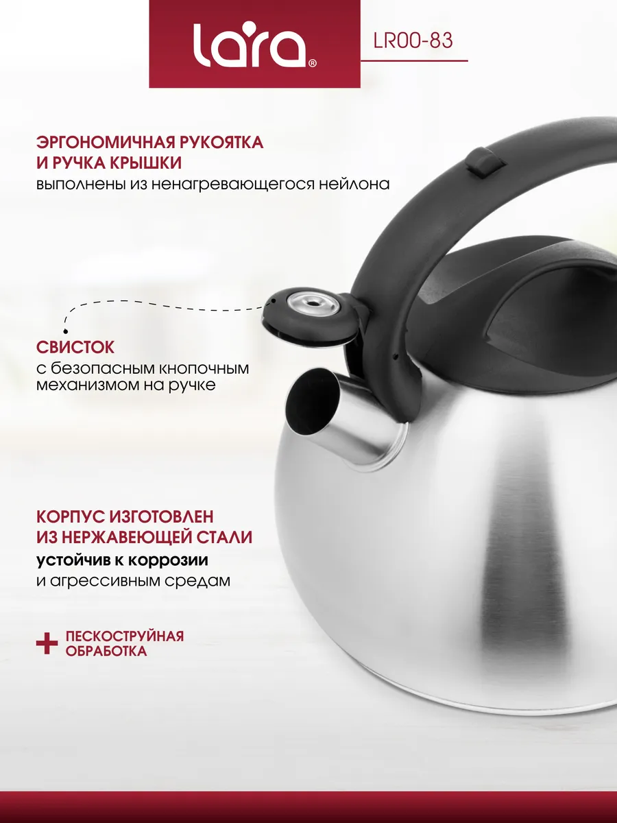 Купить Чайник LARA LR00-83 /4,5л, индукционное капсулированное дно, свисток с кноп механизм. в Брянске вы можете в сети магазинов "Современный ДОМ". Адреса магазинов