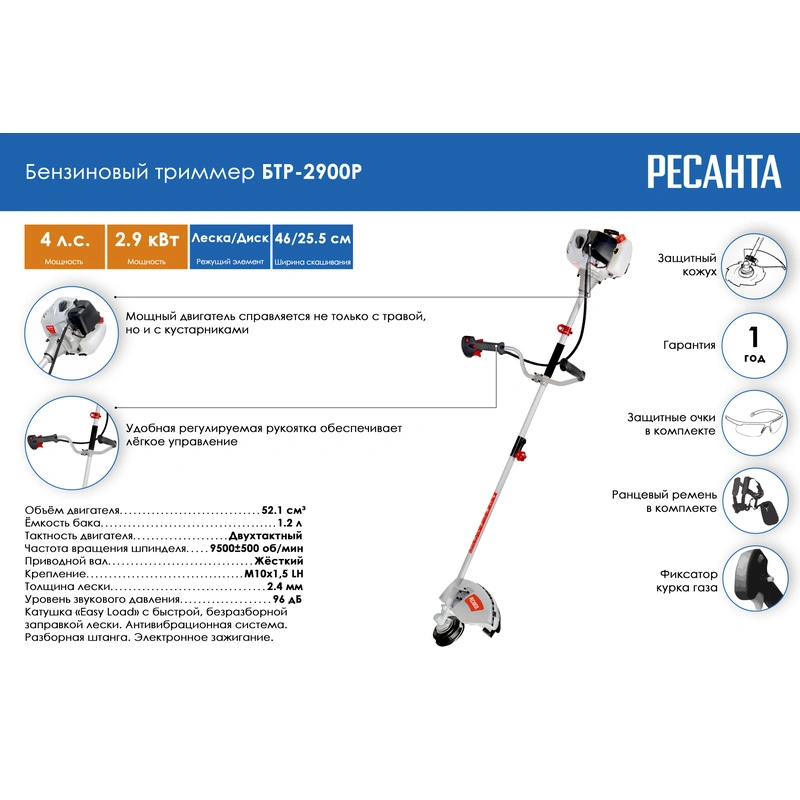 Бензиновый триммер Ресанта БТР-2900Р 70/2/43